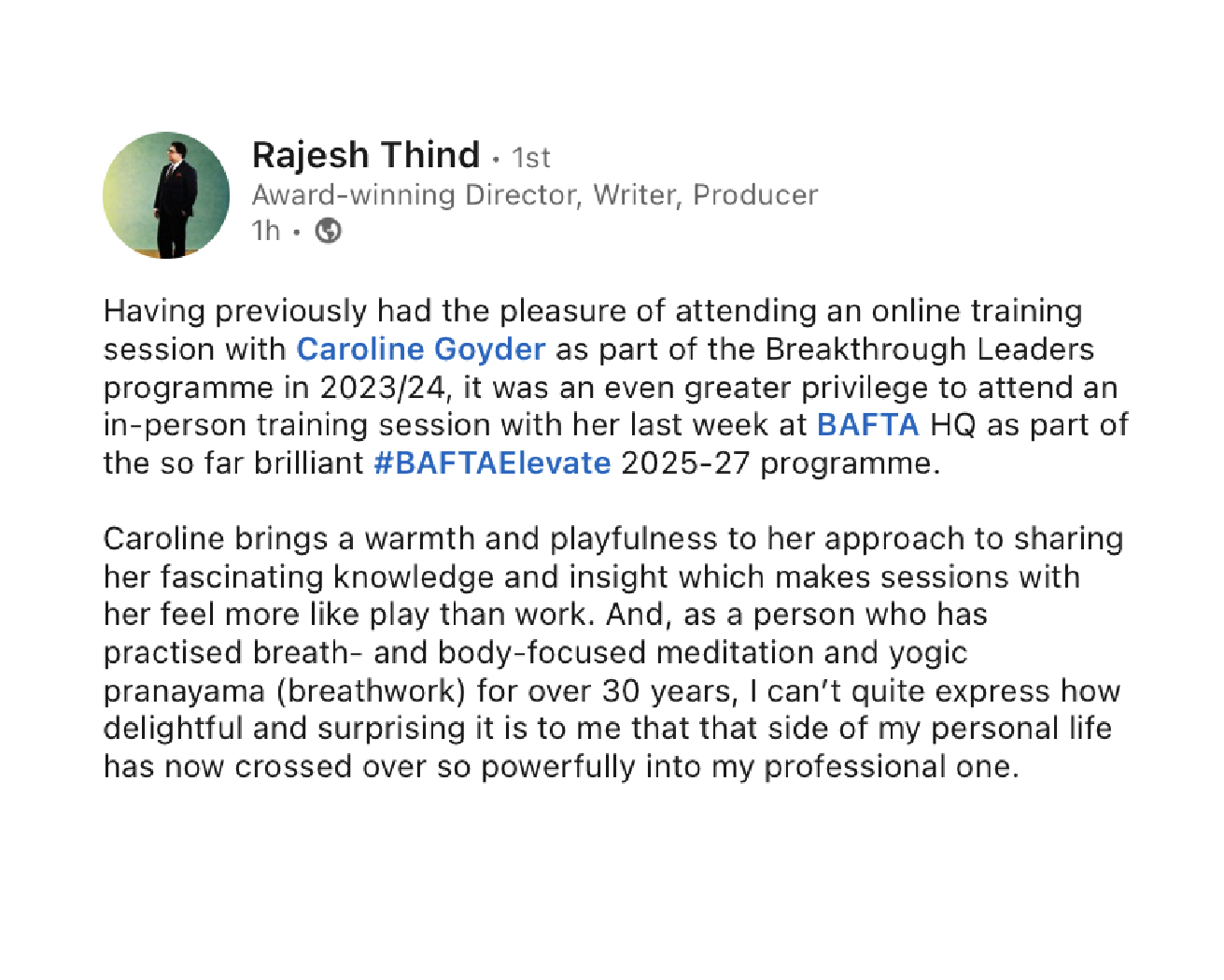 Rajesh Thind, Award-winning Director, Writer, Producer after BAFTA training with Caroline